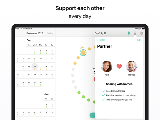 • Connect with your partner to plan intimate moments, vacations and more around your cycle.