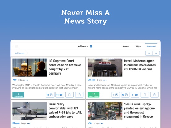 - Balanced coverage from top & prominent sources covering Israel and the middle east.