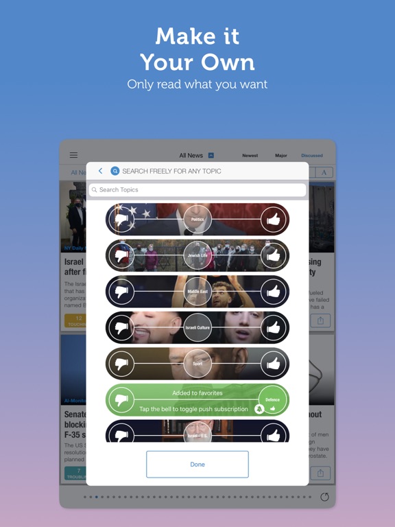 - Your very own news feed - choose the topics you want to follow, the topics you want blocked, and the topics you want to get notifications about! Don't bother yourself with news that aren't of interest to you!