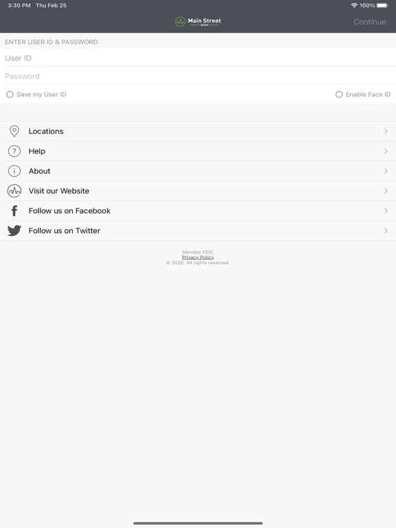 Start banking wherever you are with Main Street Bank for iPhone! Available to all Main Street Bank online banking customers. Main Street Bank Mobile allows you to check balances, make transfers, pay bills and find locations. Need to find a Branch or ATM closest to you? With Find Near Me, Main Street Bank Mobile will discover your location and provide you with addresses and phone numbers on the fly.