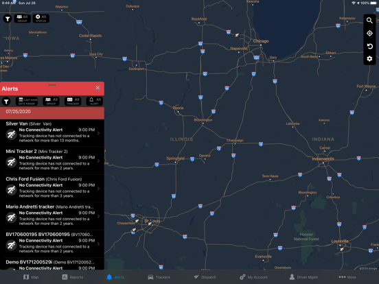 - View a breadcrumb location history for each vehicle. Clickable icons provide speed, direction and stops information.