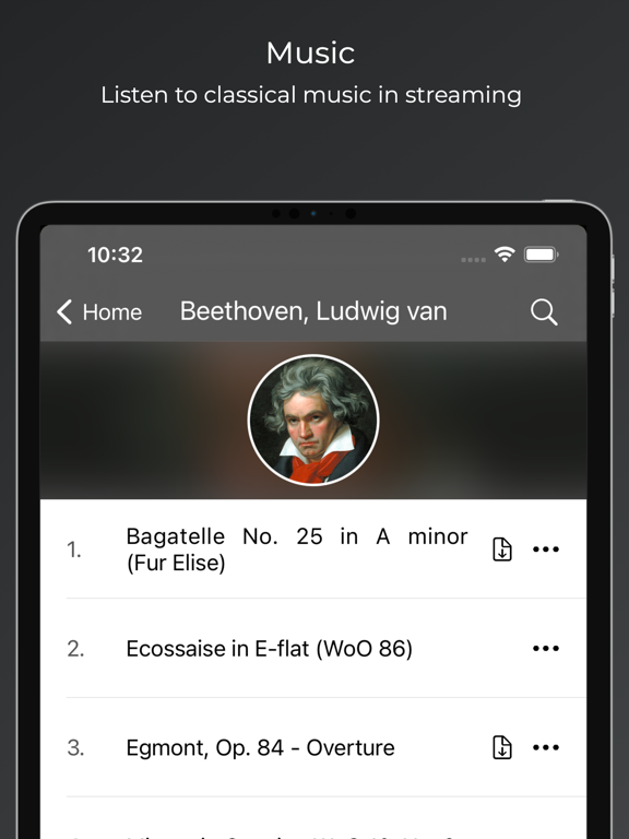 - You can download the masterpieces in order to listen whenever you want without an internet connection