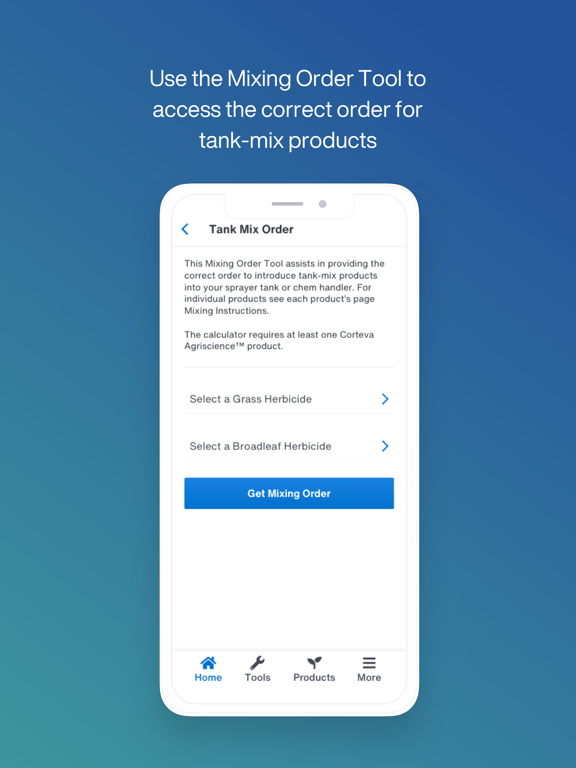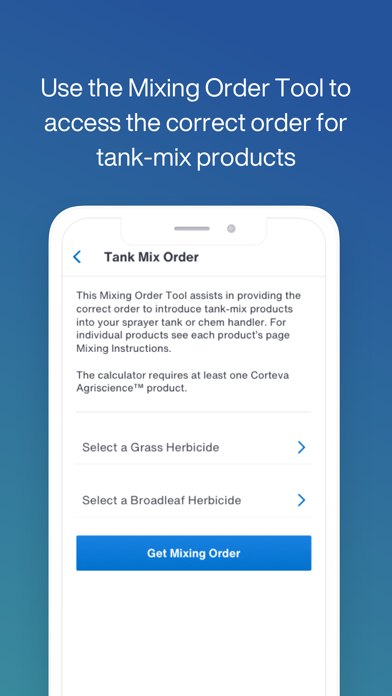- Tank Mix Order tool to help identify which herbicide products can be tank mixed together and the appropriate order in which to add them to the sprayer tank or chem handler.