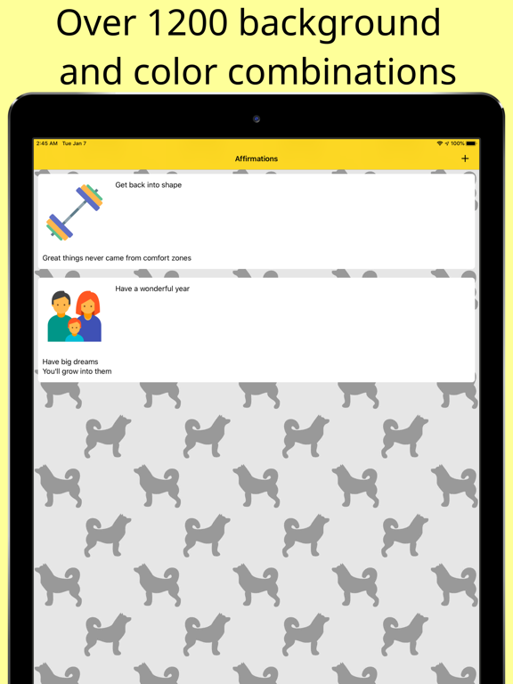 Affirmations are most impactful when you are reminded on a regular and consistent basis. This could be first thing in the morning to help you start your day or last thing at night reminding you to be present and grateful instead of hurried and stressed.We hope you find this app helpful in supporting your day-to-day activities and welcome your comments and suggestions. Contact Us!Features:- Create personalized affirmations- Choose from many affirmation samples- Configure multiple reminders per affirmation- Create location and calendar reminders- Over 1200 standard background image and color combinations- Use your own photos as the background image- Tag affirmations with a personalized category image- Choose from over 50 category tags= Always Free Trial =