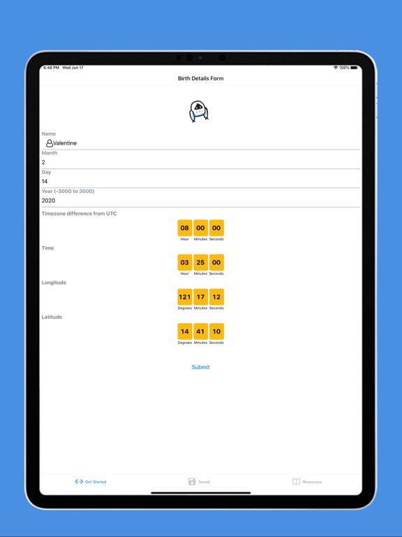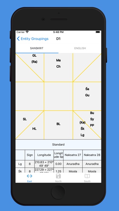 This app calculates and draws the positions of the planets, luminaries, and other astrological entities based on the inputted birth details.