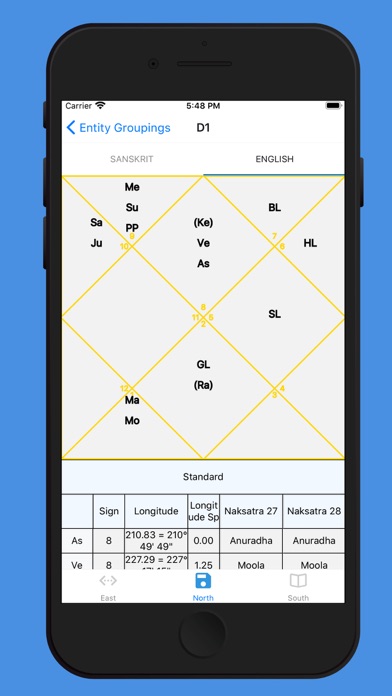 This app utilizes the High Precision Swiss Ephemeris API to calculate and draw the different divisional charts used in Vedic Astrology (a.k.a. Jyotish) based upon the individual's input of birth date, birth time, and birth place.