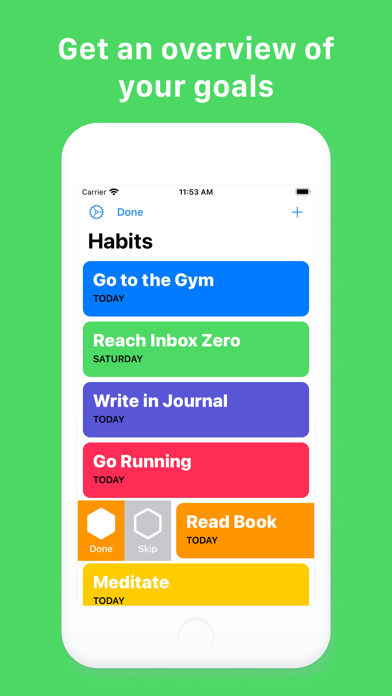 Just enter an activity, set a weekly schedule and start marking your progress.