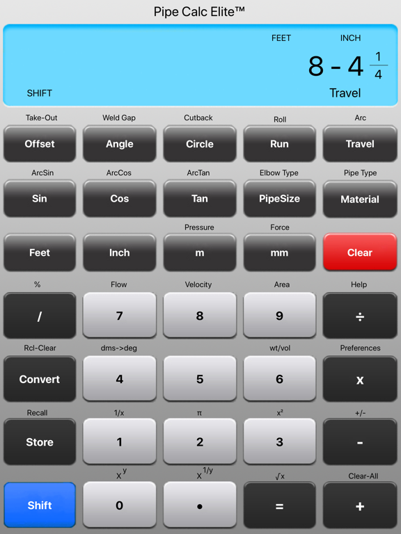 Pipe Calc Elite™ is an advanced calculator designed specifically for pipe trade professionals. This app provides quick and reliable access to standard pipe data and dimensions for 7 different piping materials. In addition, Pipe Calc Elite™ makes solving complex pressure loss equations, linear and rolling offsets, cutbacks, and other calculations you might need on the job site a breeze.
