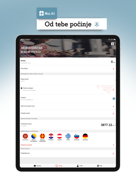 Moj A1 aplikacija ti omogućava da kao korisnik A1 mobilne mreže u Srbiji završiš sve na jednom mestu, kad god ti odgovara.