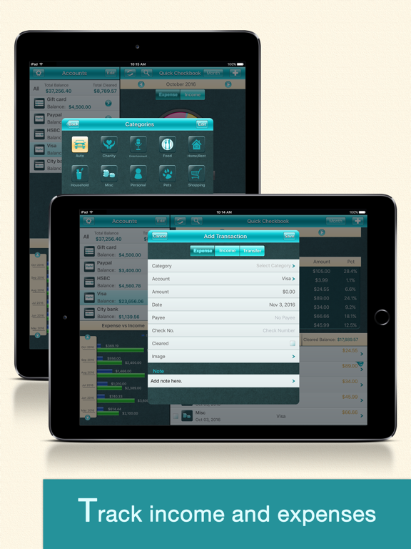 Quick Checkbook is a smart personal finance management app, you can track multiple accounts info easily and conveniently.