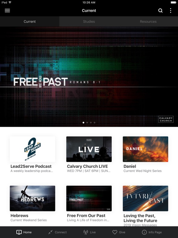 Calvary Church exists to Win a person to Jesus Christ, Disciple them in Jesus Christ, and to Send them for Jesus Christ. This App delivers: Unlimited access to our vault of Bible teachings from past and current Calvary Church Bible Studies, as well as other events. You will also have direct access to streaming worship services for each weekend and midweek study.