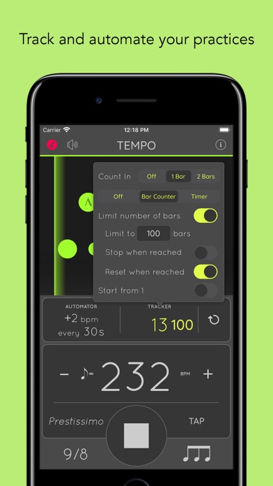 • Automatic adjustment of tempo every n number of bars or n amount of time