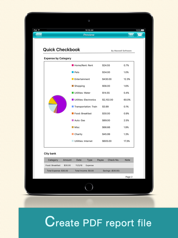 Quick Checkbook is a smart personal finance management app, you can track multiple accounts info easily and conveniently.