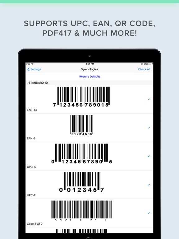 • Supports UPC, EAN, Code 128, QR Code, Data Matrix, PDF417, Aztec, Maxi, and much more!