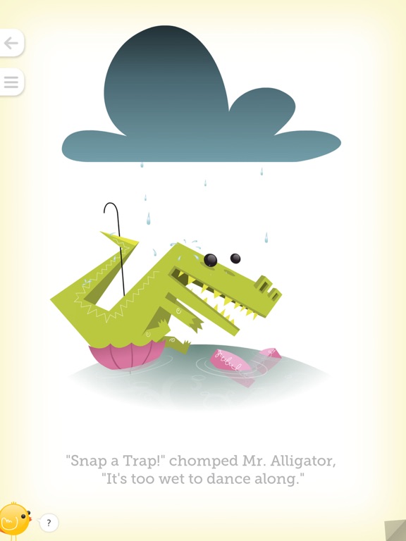 Kids will have a blast as they play the drums on a cake with Mr. Alligator, toss olives around with Little Birdie and cut the cheese with Jubitron! Optional narration allows you to choose whether to read the story aloud to your child or let them read along on their own. Tapping on any of the words in the story will result in audio playback of that individual word. It's a great tool to assist in vocabulary building and recognition.