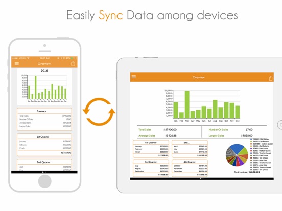 Invoice Manager is the only invoice app on the App store with one-time purchase, no monthly fees and no Internet access required. It allows to create and send UNLIMITED professional Invoices, Estimates and Purchase Orders with 20 different styles and professional templates. Also, Sync as many devices as you want in order to use the same data.