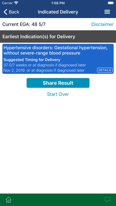 • Indicated Delivery (ACOG members only)— Provides members with suggestions related to the timing of delivery based on selected conditions, the patient’s EDD/EGA, and ACOG’s clinical guidance