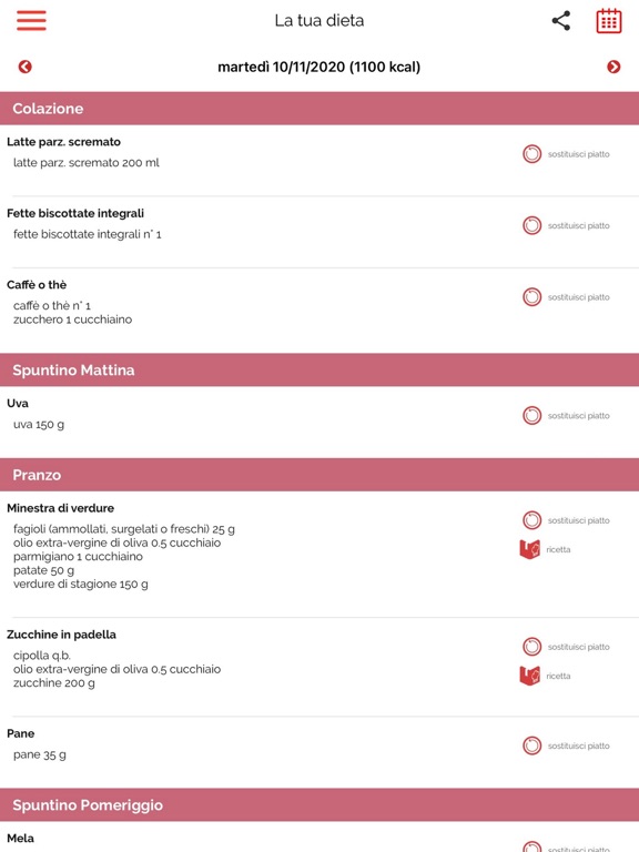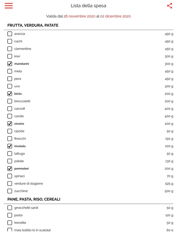 - La dieta e la lista della spesa interattiva settimanale sono sempre a portata di mano.