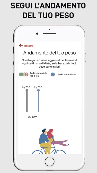 Melarossa ti ricorda ogni settimana di fare un check del peso, per monitorare costantemente il programma dietetico fino a quando non raggiungi il peso desiderato.