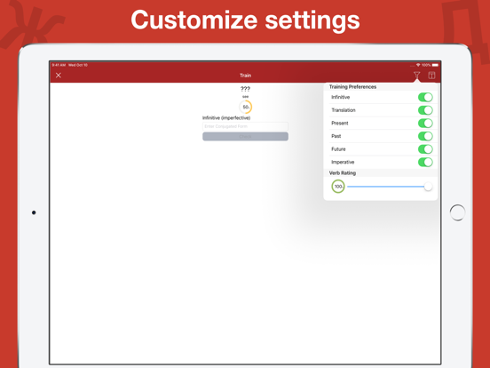 CUSTOMIZE EXERCISE: filter the verbs based on tenses/mood and/or ratings within the selected list of verbs.