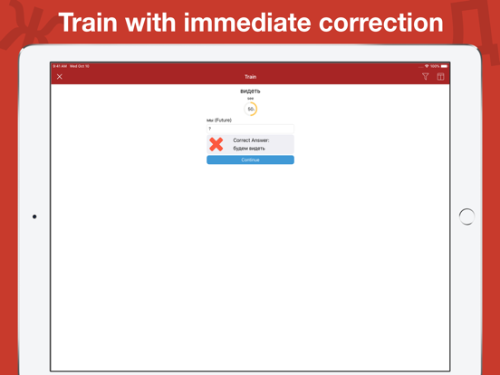 Learn to conjugate the 600 most common Russian verbs in all tenses and in the imperative mood. Listen to the pronunciation of conjugated forms. Track your progress with statistics.