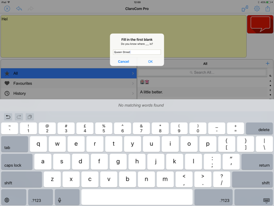 ClaroCom can be personalized to suit your individual needs, basic personal information is easily added and will appear in Phrases. ClaroCom Pro can be personalized by setting your name, so many phrases will detect and use it, saving time.