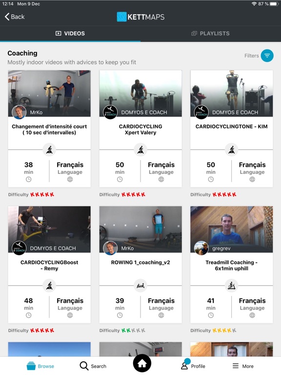 Play a sport with KETTMaps as it turns your bike trainer, exercise bike, treadmill or rowing machine into a powerful and fun fitness. Choose a video and train on the KETTMaps app. The app will adjust the incline or resistance in real-time according to the elevation profile or structured workout.