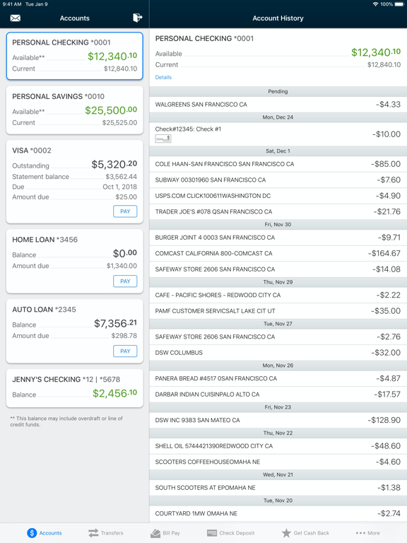 • Check available balances & transaction history