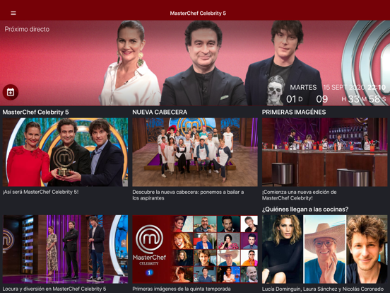 ¿Eres fan de MasterChef? Necesitas la nueva aplicación ofical. Revive los mejores momentos, vuelve a ver todos los programas, aprende a cocinar con sus recetas, accede a contenido exclusivo y conoce mejor a los aspirantes. CARACTERÍSTICAS + Directo + Todas las noticias sobre los aspirantes + Programas completos + Mejores momentos + Recetas + Ediciones anteriores