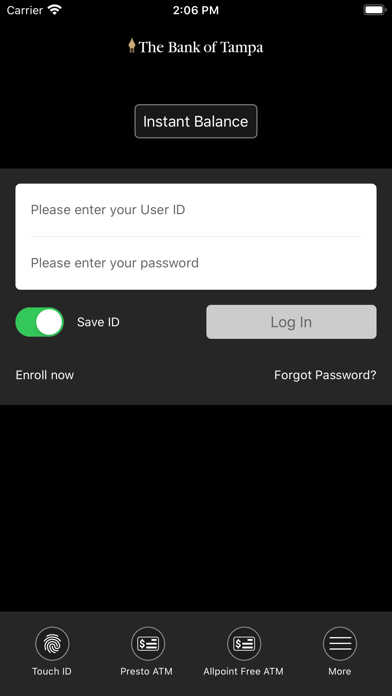 Getting started is easy. Simply download the app and sign on with your Online Banking user credentials. For more information about The Bank of Tampa mobile services, please visit https://personal.bankoftampa.com/PBI_PBI1151/Login/063108680 or call us at (813) 998-1950.