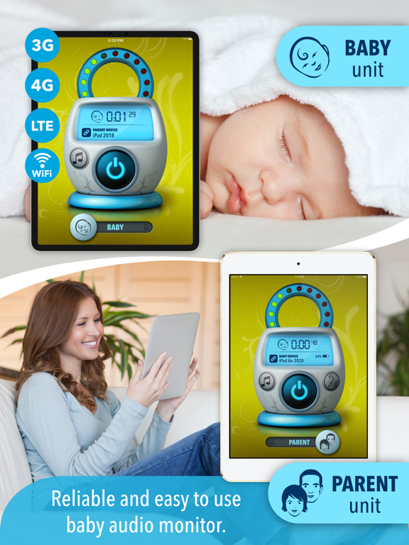 Reliable and easy to use baby audio monitor. Smart monitoring detects everything what is going on nearby your baby.