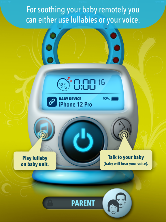 For soothing your baby remotely you can either use your voice or lullabies (integrated or your own ones).