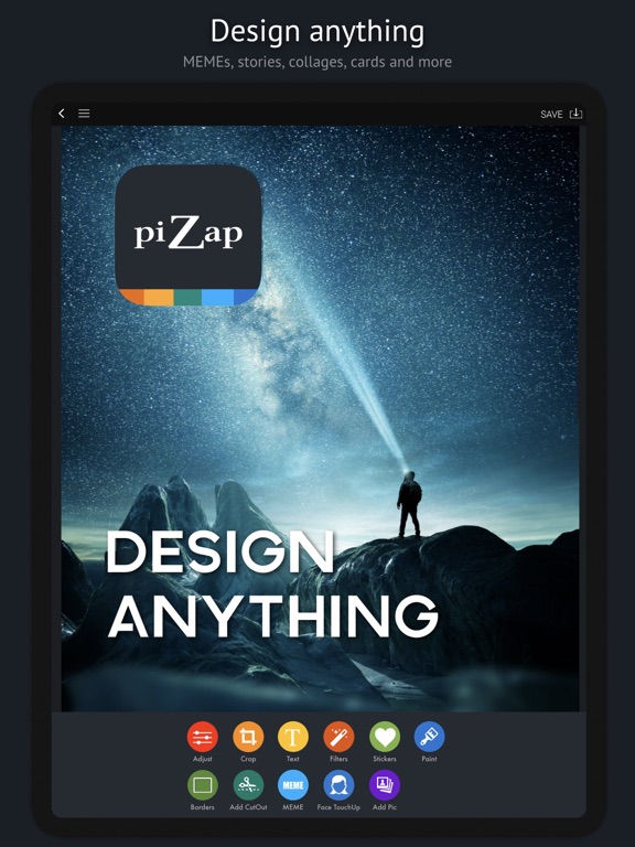 The power of a professional in your pocket. With piZap you can create everything from a social media story to a full print-ready flyer. With 1000’s of premade templates you can get started fast and skip the blank paper stage.