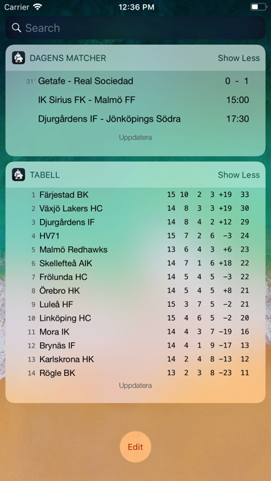 Livescore för hockey SHL, HockeyAllsvenskan, HockeyEttan, AllEttan, J20 SuperElit, SDHL, DamEttan, CHL, Hockey-VM, Hockey-OS, World Cup i Ishockey, JVM, NHL, KHL, Hockey Försäsongsmatcher, Euro Hockey Tour, Hockey Träningsmatcher och Bandy Elitserien, Handbollsligan, Handboll SHE, Innebandy SSL Herr, Innebandy SSL Dam och fotbollen med Allsvenskan, SuperEttan, DamAllsvenskan, Elitettan, Division 1 och 2, Fotbolls-VM, Fotbolls-EM, Fotbolls-EM Dam, Fotbolls-EM U21, Copa America, Fotbolls-OS, Premier League, Champions League, League One, FA-Cupen, Engelska Liga-Cupen, Europa League, The Championship, La Liga, Serie A, Ligue 1 och Eredivisie och Bundesliga.