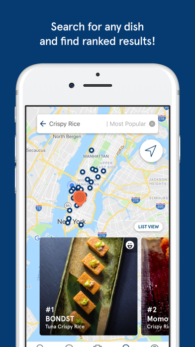 - Share dish photos to earn points and prizes (like dinner on us) for posting and competing on your city's leaderboard.