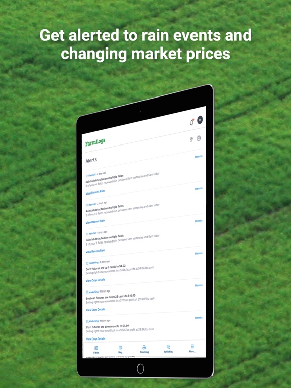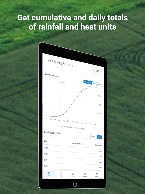 - Receive alerts when it rains on your fields, see field-level rainfall and heat unit accumulation and compare the amounts to prior seasons and the 10-year average