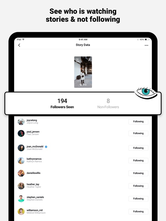 Track followers, unfollowers, story viewers on Instagram and much more!