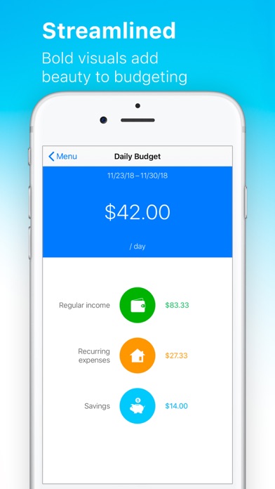 Beyond spectacular! - This app is so fantastic- as with many other reviewers, I've tried other budgeting apps like Mint. But this is the only app that actually works. It incentives me to spend less money on some days, have extra to spend on the weekends. Thank you for not adding too many bells and whistles!