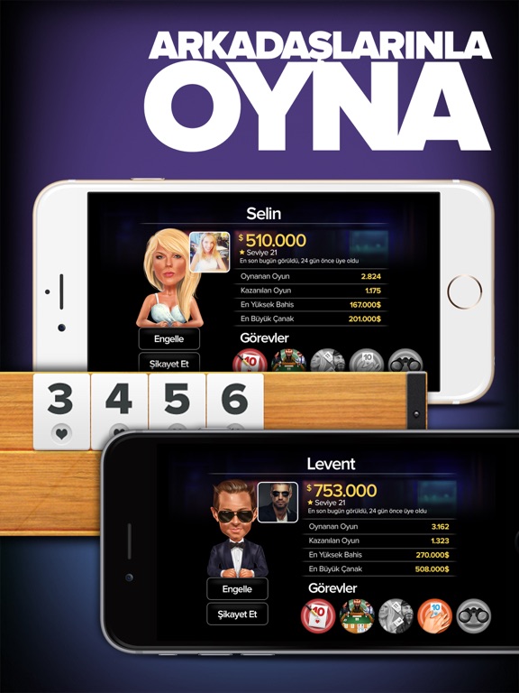 3G, Edge veya Wi-Fi üzerinden online olarak, arkadaşların ya da 100.000 'lerce kullanıcı ile birlikte okey keyfini yaşamak için hemen ücretsiz olarak Rakkip Okey 'i indir.
