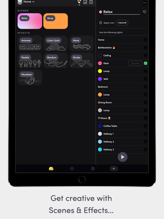 - Effects: play with special effects like the music visualizer, fire, move, candle flicker, strobe, color cycle & more, all in one place.