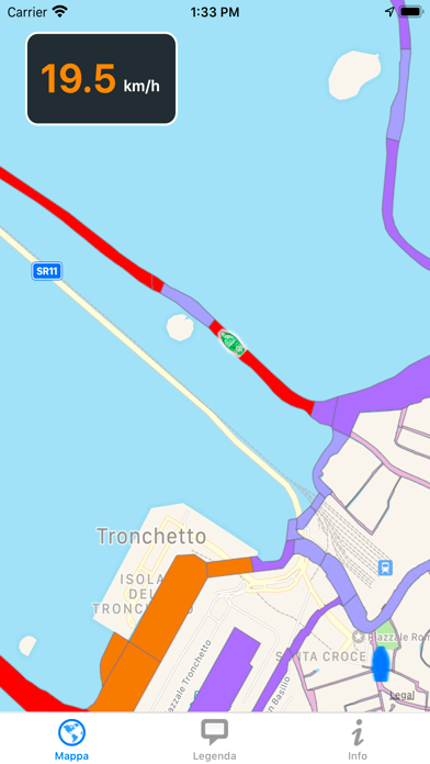 iFretta fornisce la posizione, monitora la velocità della propria imbarcazione nella Laguna di Venezia e avvisa istantaneamente in caso di superamento dei limiti di velocità.