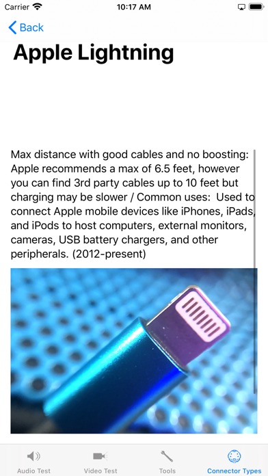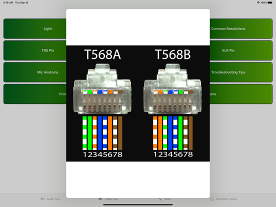 There are several other handy AV features like flashlight, IR detector, TRS, XLR, CAT-5 Pinout reference, cable connector resource guide, and additional tips for troubleshooting Audio Visual systems.