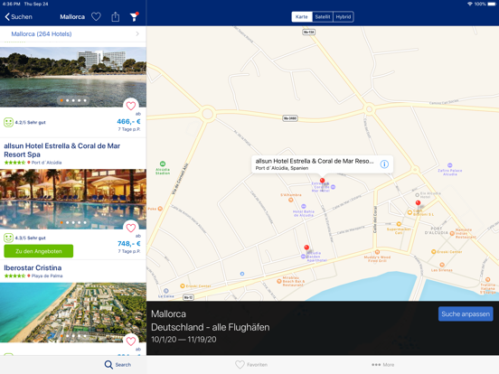 · Tagesaktuelle Angebote von bis zu 100 Reiseveranstaltern (z. B. FTI, TUI, Alltours und Schauinsland Reisen)