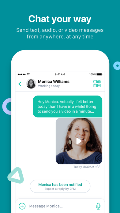 Tell us your preferences for therapy, and match with one of our therapists in your state the same day. Send your therapist unlimited text, audio, picture, or video messages from anywhere, at any time — you’ll hear back at least once a day, 5 days per week.