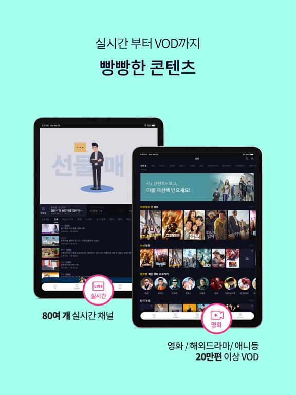 - 최근 본 영상 이어보기, 내가 찜한 콘텐츠 등 자주 사용하는 메뉴를 첫 화면에서 바로 볼 수 있습니다.