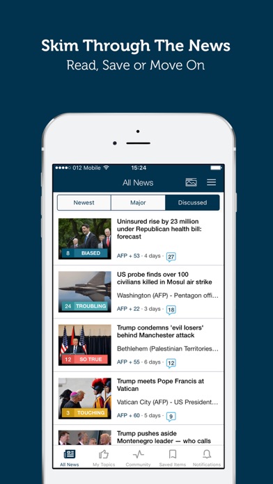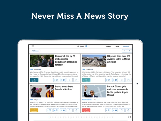 * A clean feed with no repeated stories! For each story see all the different sources that covered it with a simple tap!