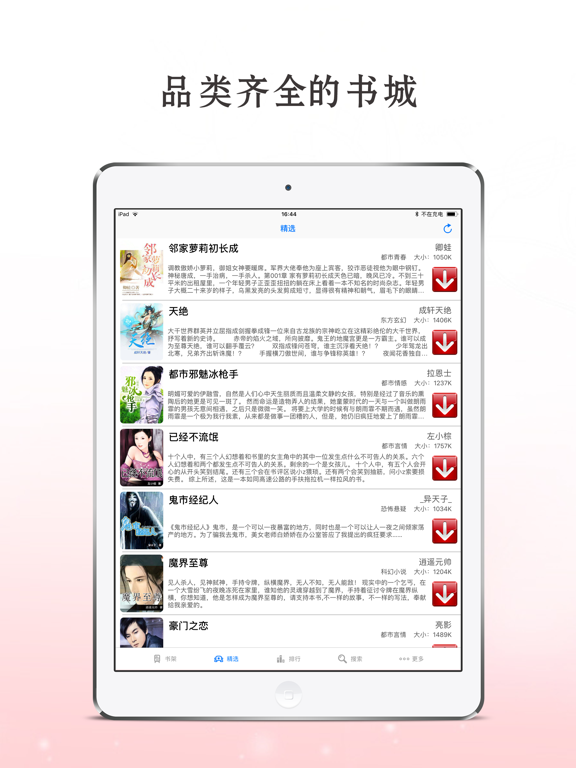 ◆正版书库中涵盖穿越/玄幻/言情/名著/都市/恐怖/网游/官场等各分类优秀小说; ◆最顶级的阅读体验设计,护眼夜间模式、自动记忆最近阅读位置、仿真3D翻页特效、十余种阅读配色方案等; ◆图书高效压缩,书库中几百万字的小说10秒内下载完成,书架中图书可以随时删除,节约您的存储空间; ◆超强的产品稳定性,决无拖沓卡屏和闪退现象; ◆本产品图书已获得版权商授权,请支持正版内容。 更多精彩,期待您的发现!