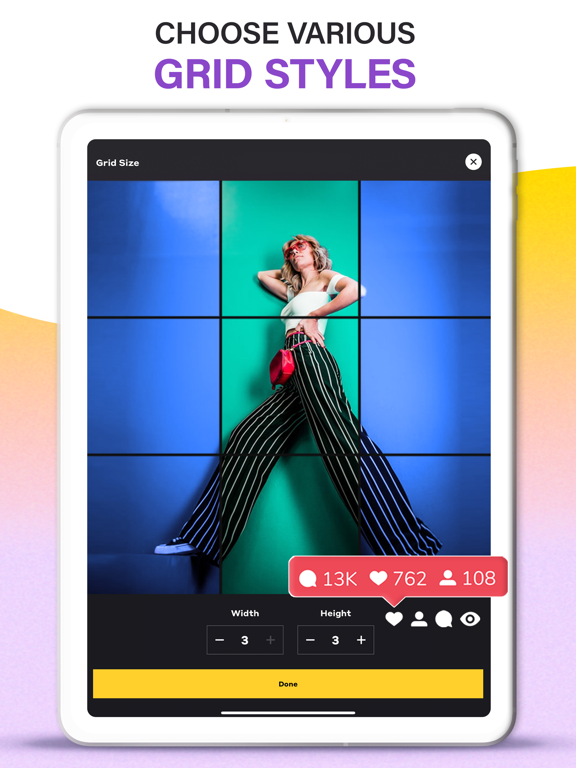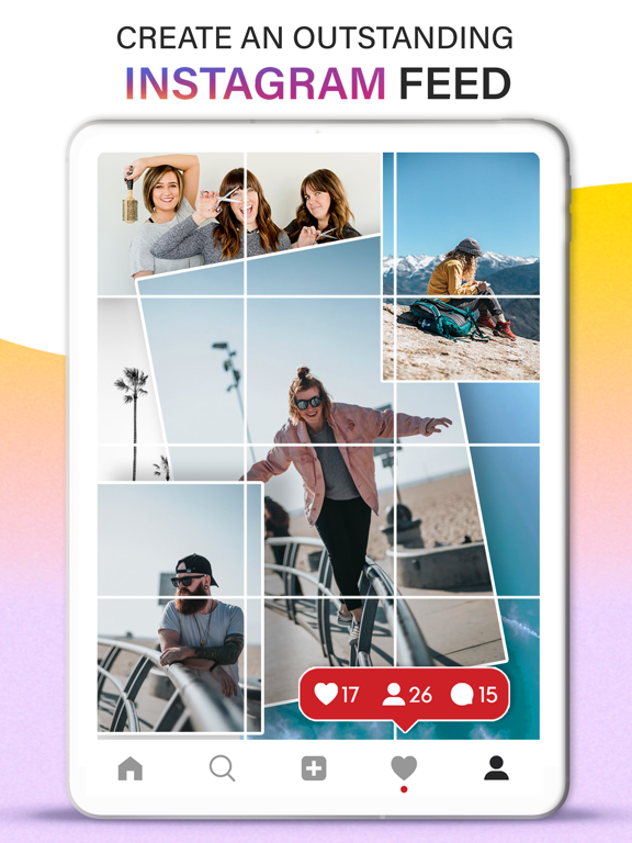 Grids introduces a totally new way of using your Instagram, wrapped in simple and beautiful design. Don't miss the chance to express yourself by embellishing your profile page and posting breathtaking large scale images in their full glory!