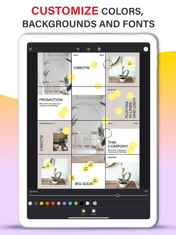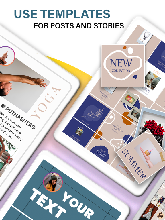 Each design template in the app is fully customizable. Edit it with your photos, texts and stickers to create an aesthetic that’s unique to you! Moreover, all feed templates are seamless, meaning you can reuse them again and again to impress your followers with consistent look of your profile. With our puzzle grid templates, you won’t have to worry about the look of individual posts as we’ve made sure that there’s a valuable eye-catching element in each tile.