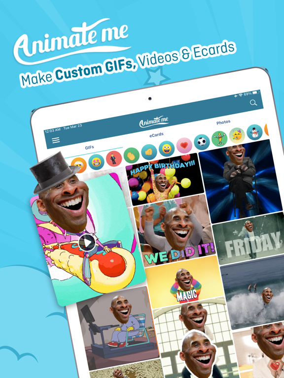 All GIFs, Animations and Ecards in the Animate Me app are free to view and share as GIFS.